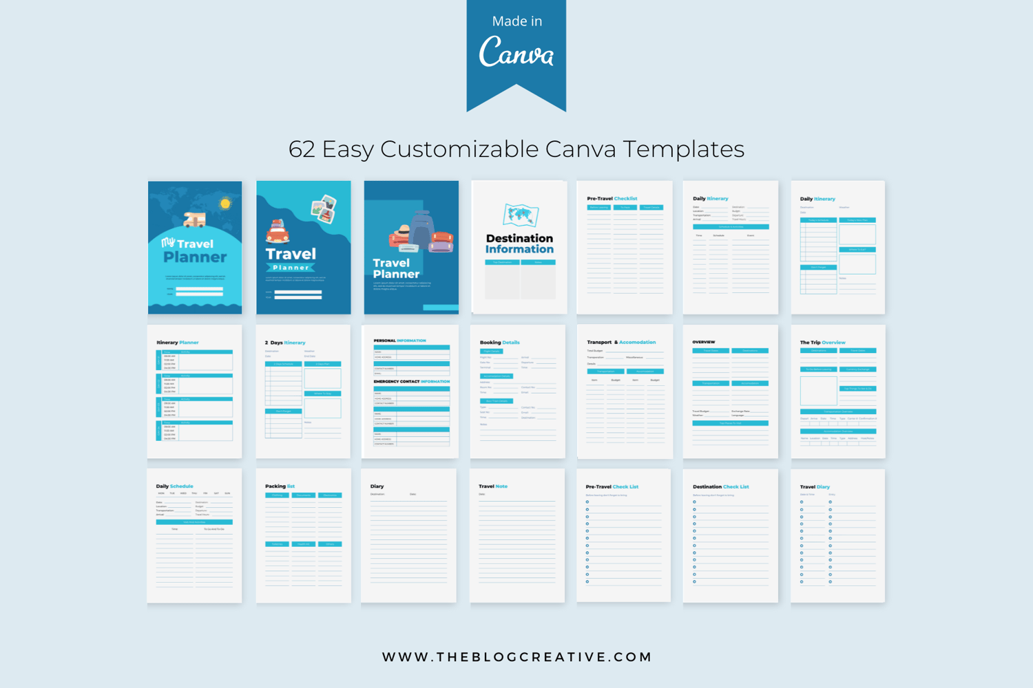 ✈️ Say goodbye to messy itineraries and hello to stress-free adventures with the Travel Planner – a 62-page customizable Canva planner designed for globe-trotters and weekend warriors alike!