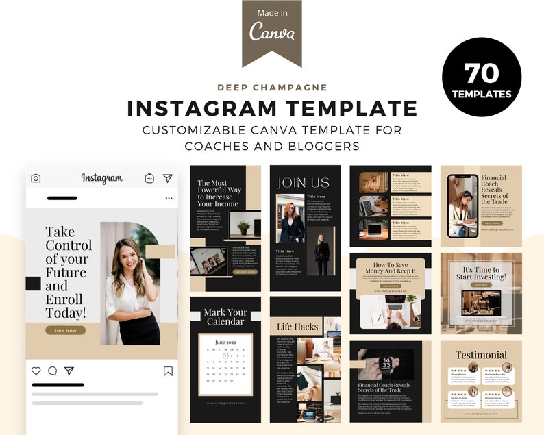 It's the best way to get your business noticed on Instagram! This professional Financial Coaching Instagram template will help you stand out from the crowd. We’ve created this template specifically for Financial Coaching brands so it will showcase your services in the best possible light! The financial coaching Instagram canva template gives your posts a professional edge by adding the perfect call to action. Use this template to create and share professional-looking posts to build your brand and attract more followers.