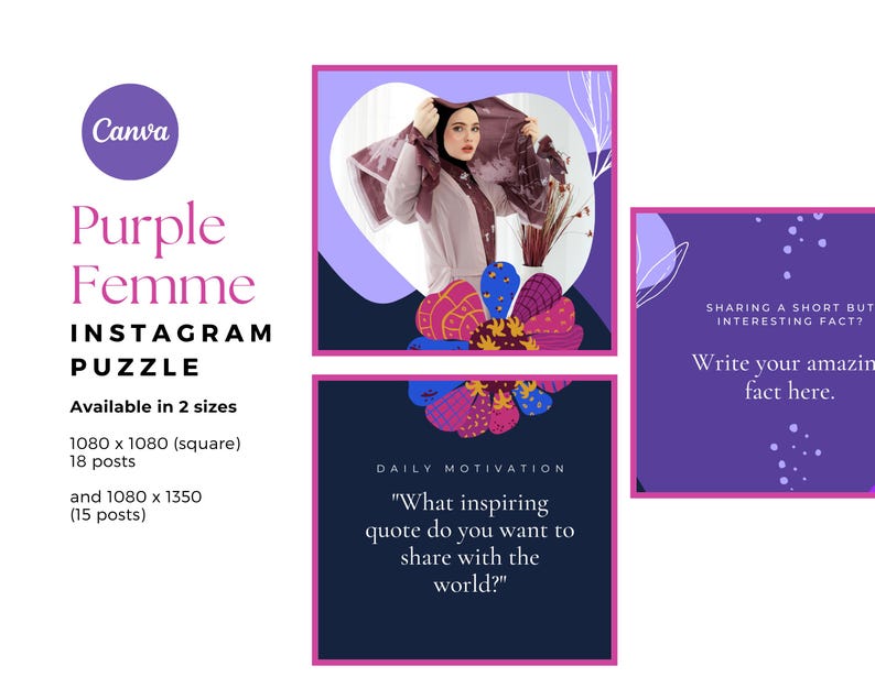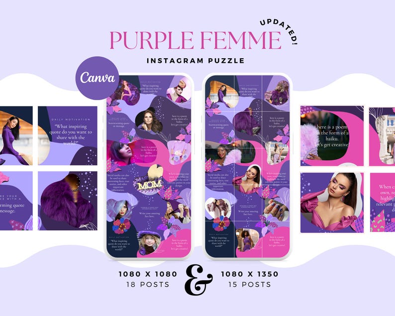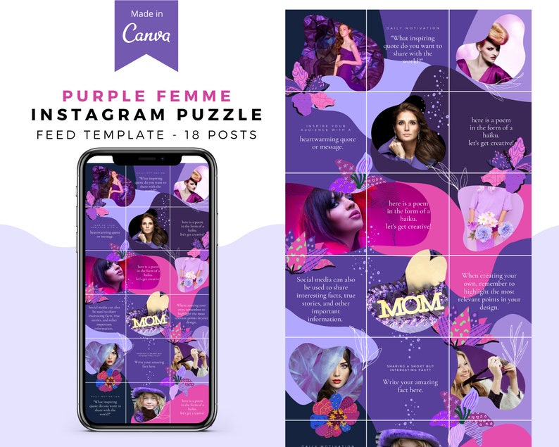 🔥 Stand out on Instagram with a visually engaging, professional feed! Grab your Purple Femme Instagram Puzzle Template today and start posting like a pro!