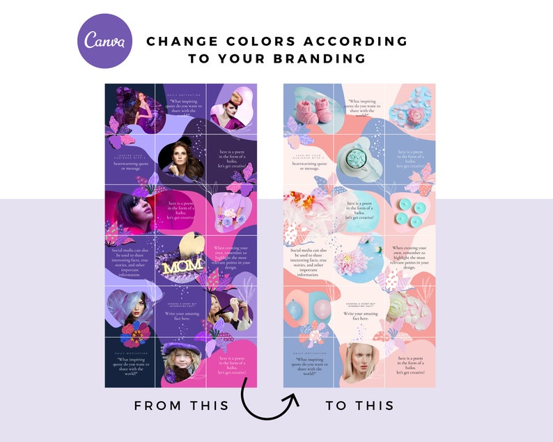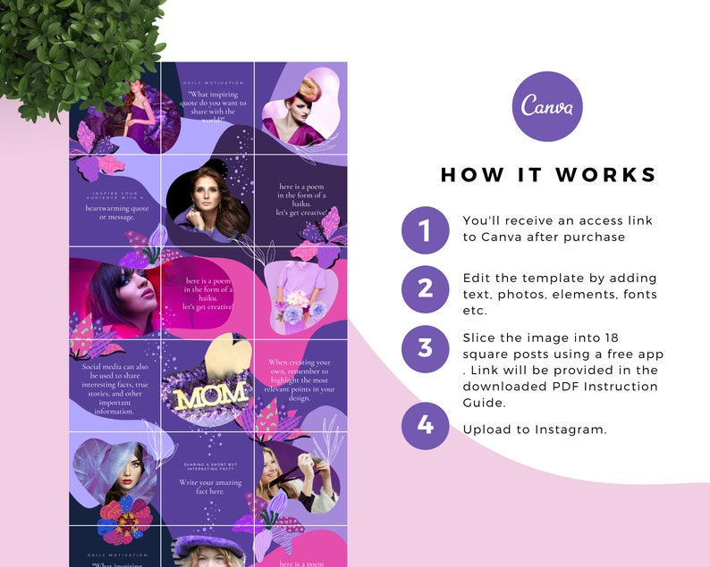 Transform your Instagram into a stunning, cohesive masterpiece with the Purple Femme Instagram Puzzle Template! Designed for female entrepreneurs, influencers, and creatives, this customizable Canva template helps you achieve a seamless, eye-catching aesthetic that boosts engagement and brand recognition.