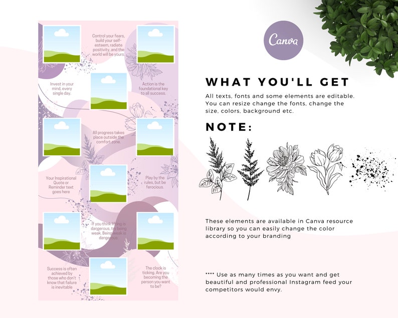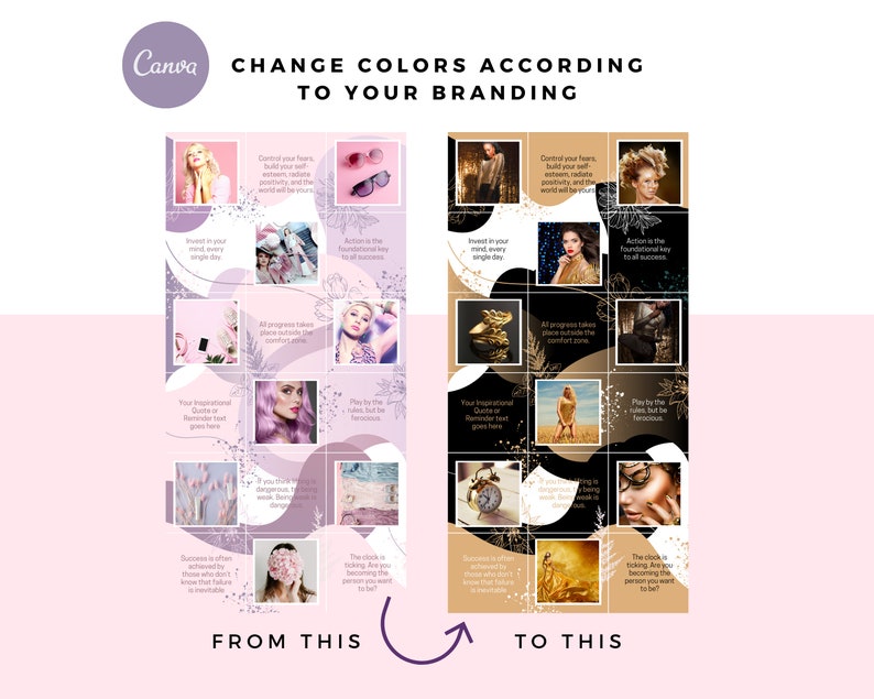 ⚫ Each set breaks down into 18 individual posts (1080 px x 1080 px) for easy uploading.