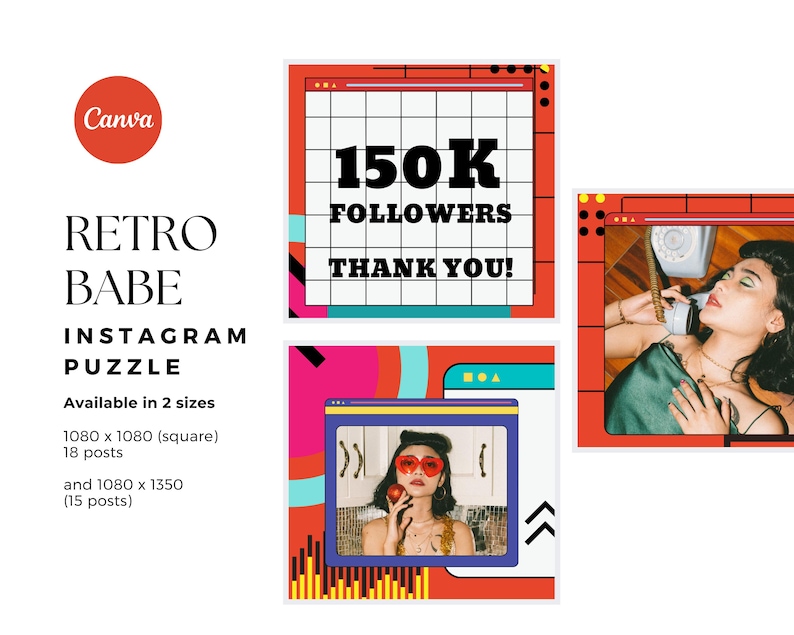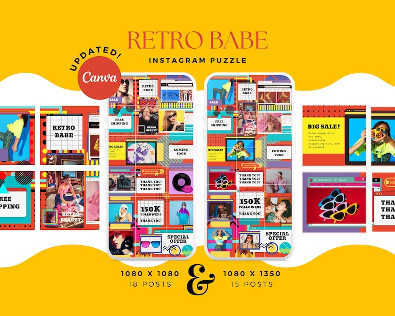 Retro Babe Instagram Puzzle – Aesthetic & Professional Canva Template Feed for Small Influencers & Businesses