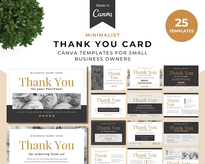 With our 25 Minimalist Thank You Card for Small Business Canva Template Pack, you’ll never have to worry about expressing your gratitude. Get your set today and say thank you in style!