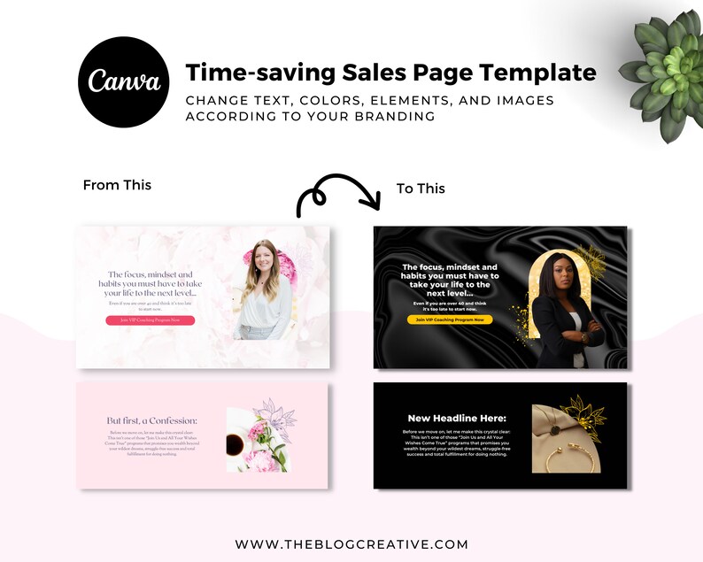 With these time-saving templates you can quickly create your own sales page, even if youβre a beginner, in just minutes β Simply add your branding to the templates and publish your site with Canva!