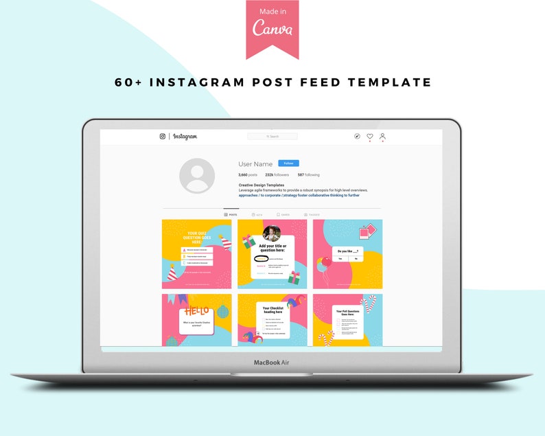 Ready to have a stylish Instagram Feed for your business? This template consists of 30 Instagram posts that would make your Instagram feed look professionally gorgeous. It is perfect for busy bloggers, influencers, and entrepreneurs who would like to focus more on what they do best Marketing! Let us do the designing part for you. =)