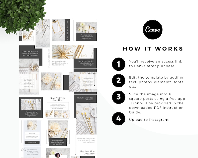 1️⃣ Instantly access the Canva template after purchase.