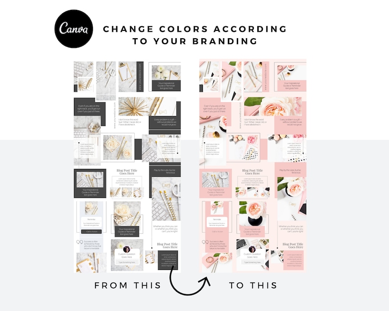 📌 BONUS: This template works with multiple branding styles! You can easily adjust the colors and fonts to match your unique business aesthetic—whether you prefer soft pastels, bold neutrals, or luxurious gold accents.