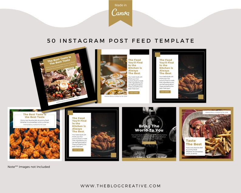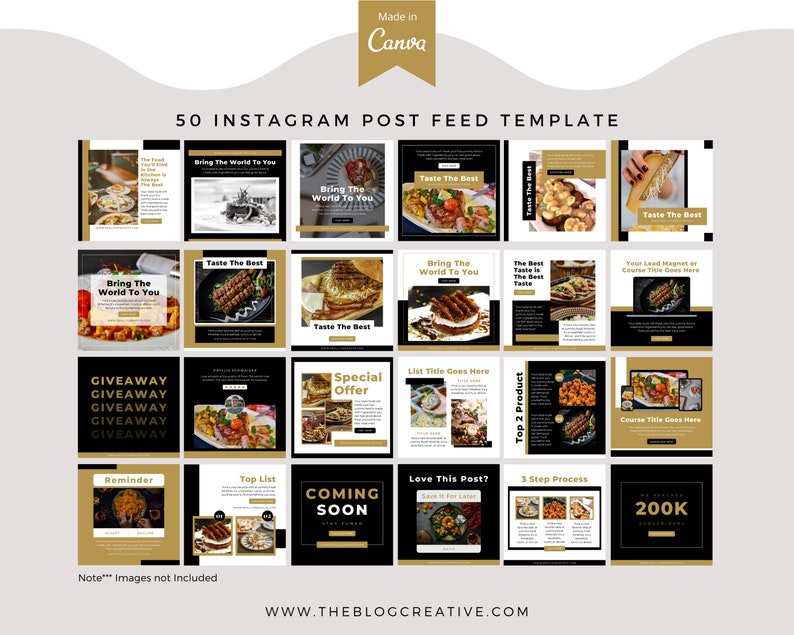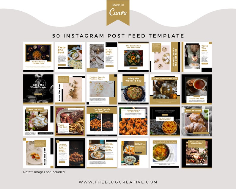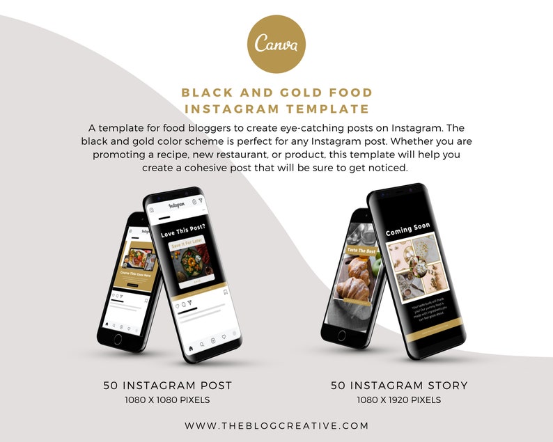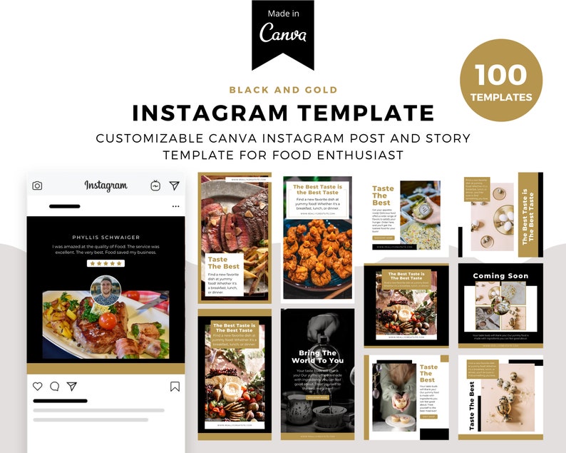A template for food bloggers to create eye-catching posts on Instagram. The black and gold color scheme is perfect for any Instagram post. Whether you are promoting a recipe, new restaurant, or product, this template will help you create a cohesive post that will be sure to get noticed.