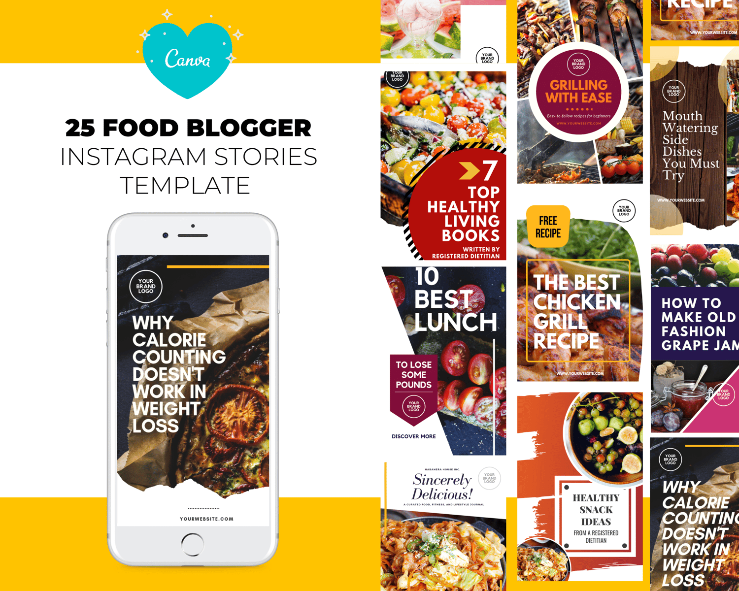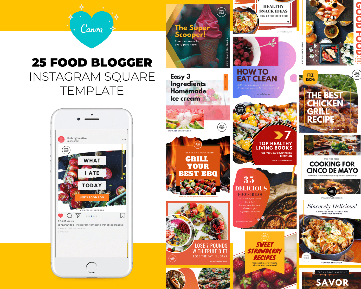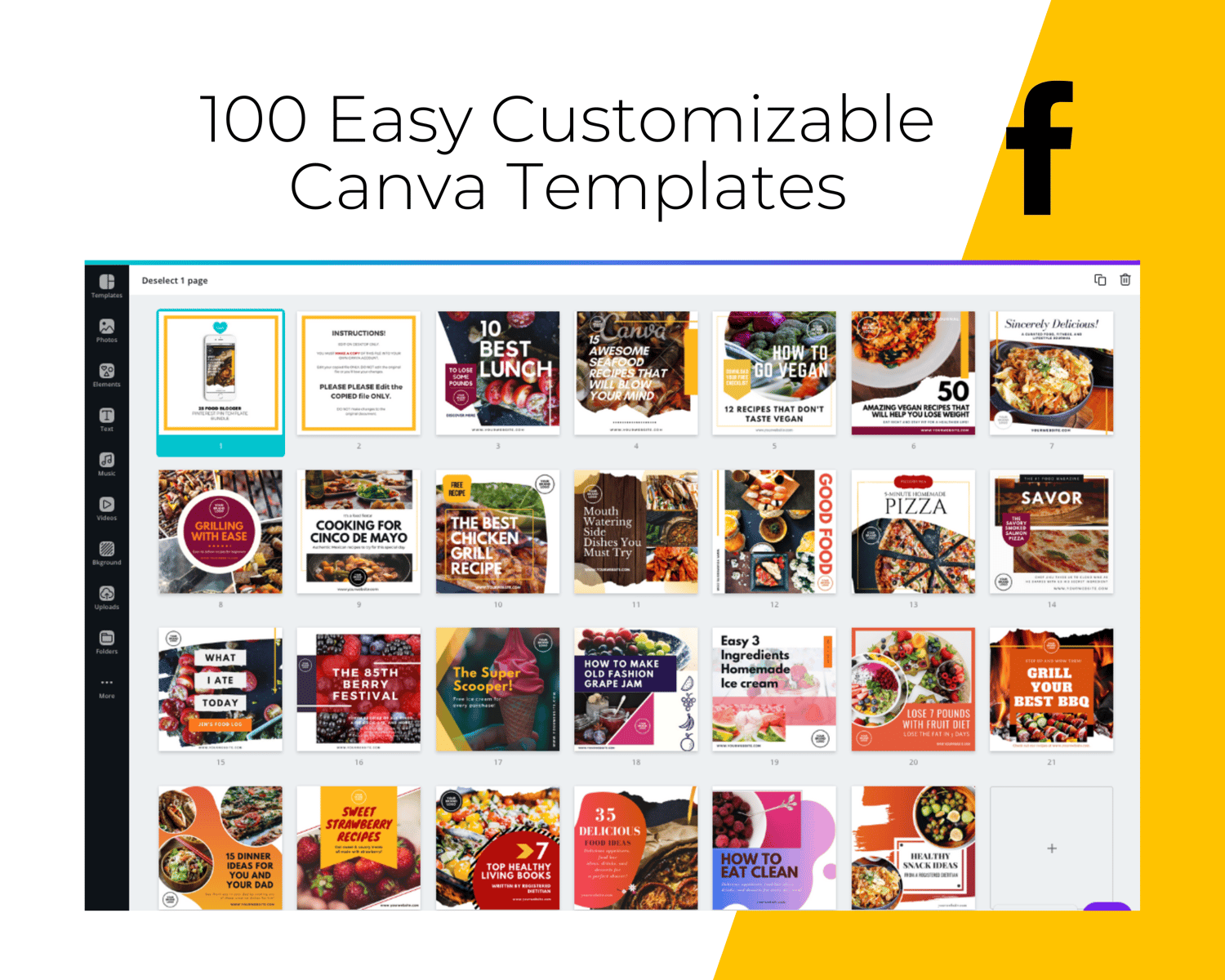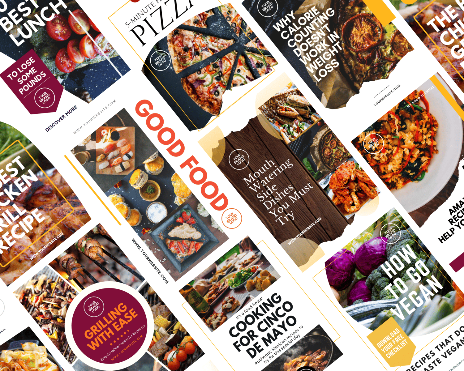 From mouthwatering Pinterest pins to bold Facebook posts, this yummy template bundle makes your food content irresistible across every platform β and it's fully customizable in Canva!