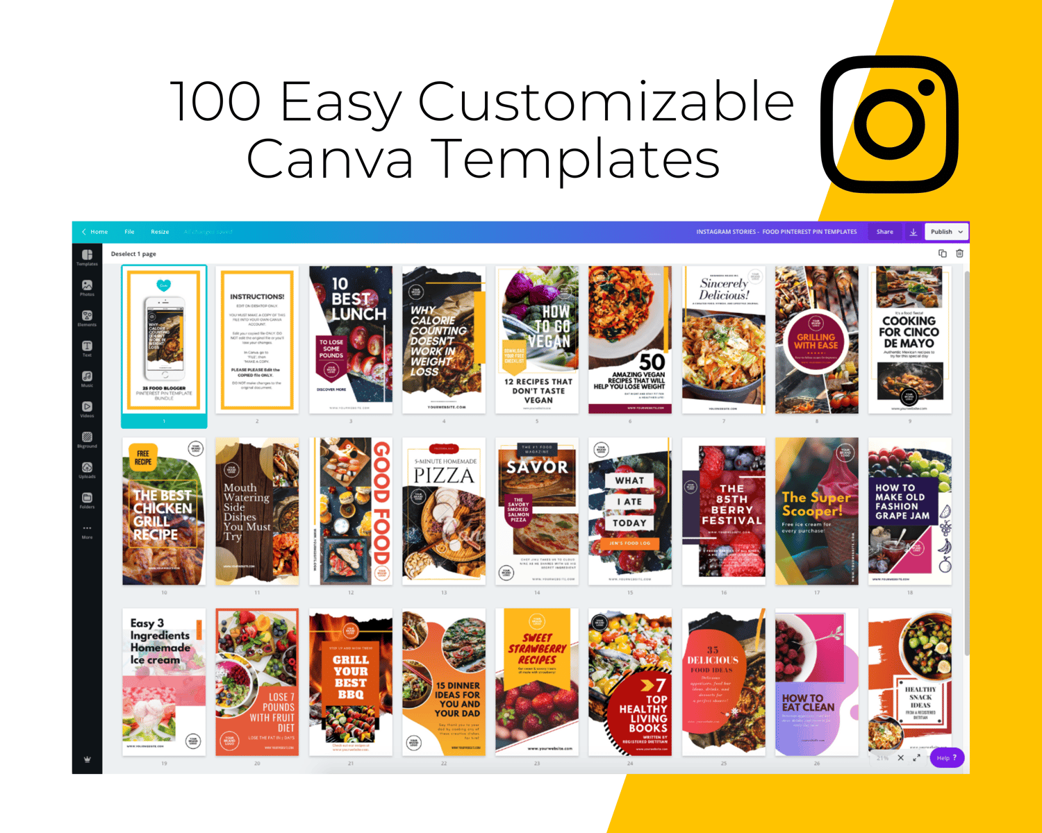 ππ₯ Foody Love β 100 Social Media Canva Template Pack