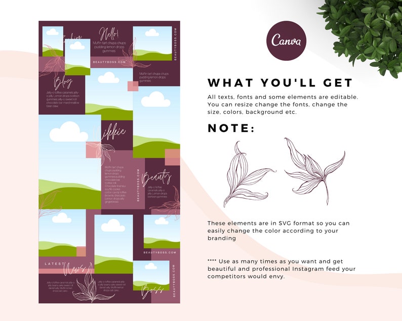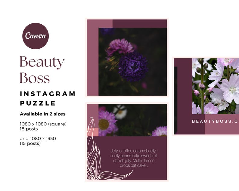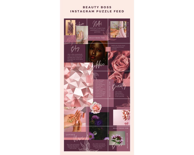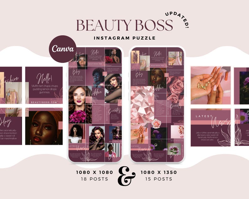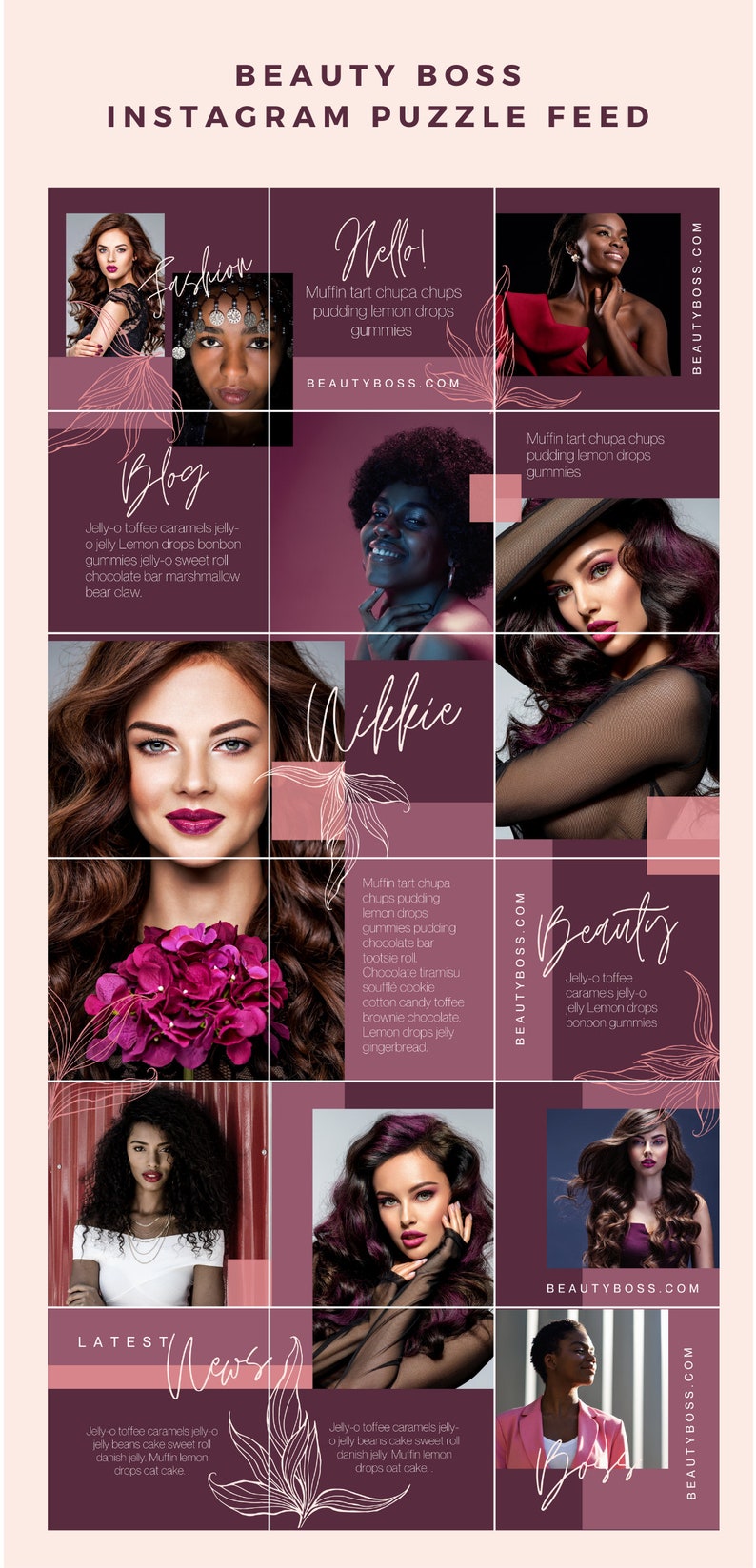 Transform your Instagram feed with this beautifully designed puzzle feed template! Featuring 18 and 15 Instagram posts in 4 unique set combinations, this template will make your profile look professionally stunning.