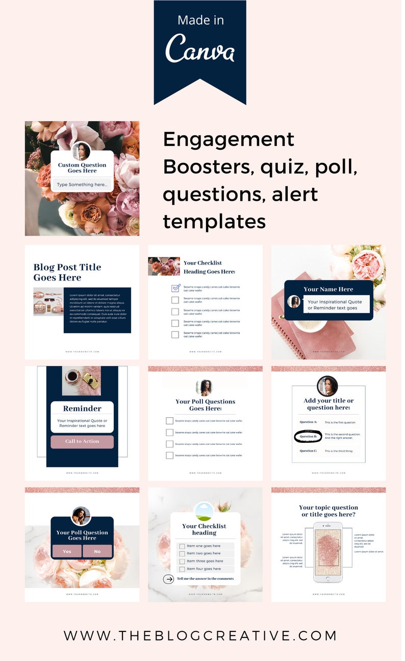 A 140 Awesome Instagram and Facebook Engagement Post Templates that is fully customizable in Canva.