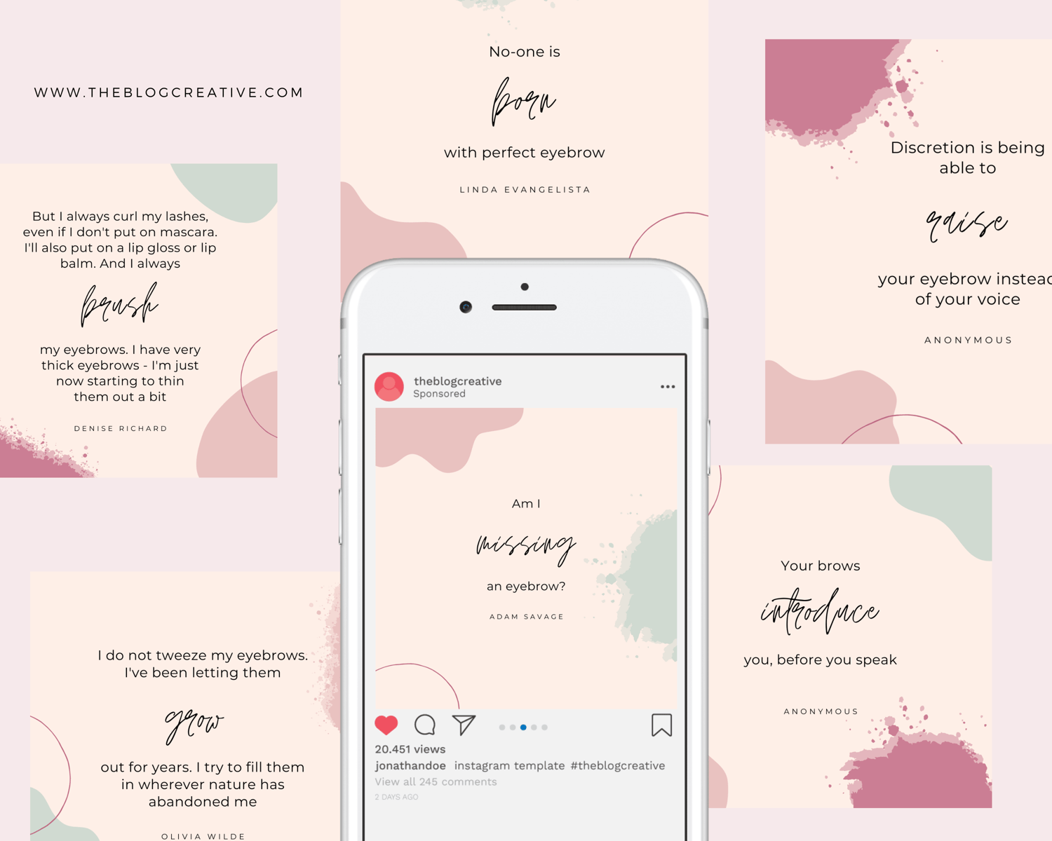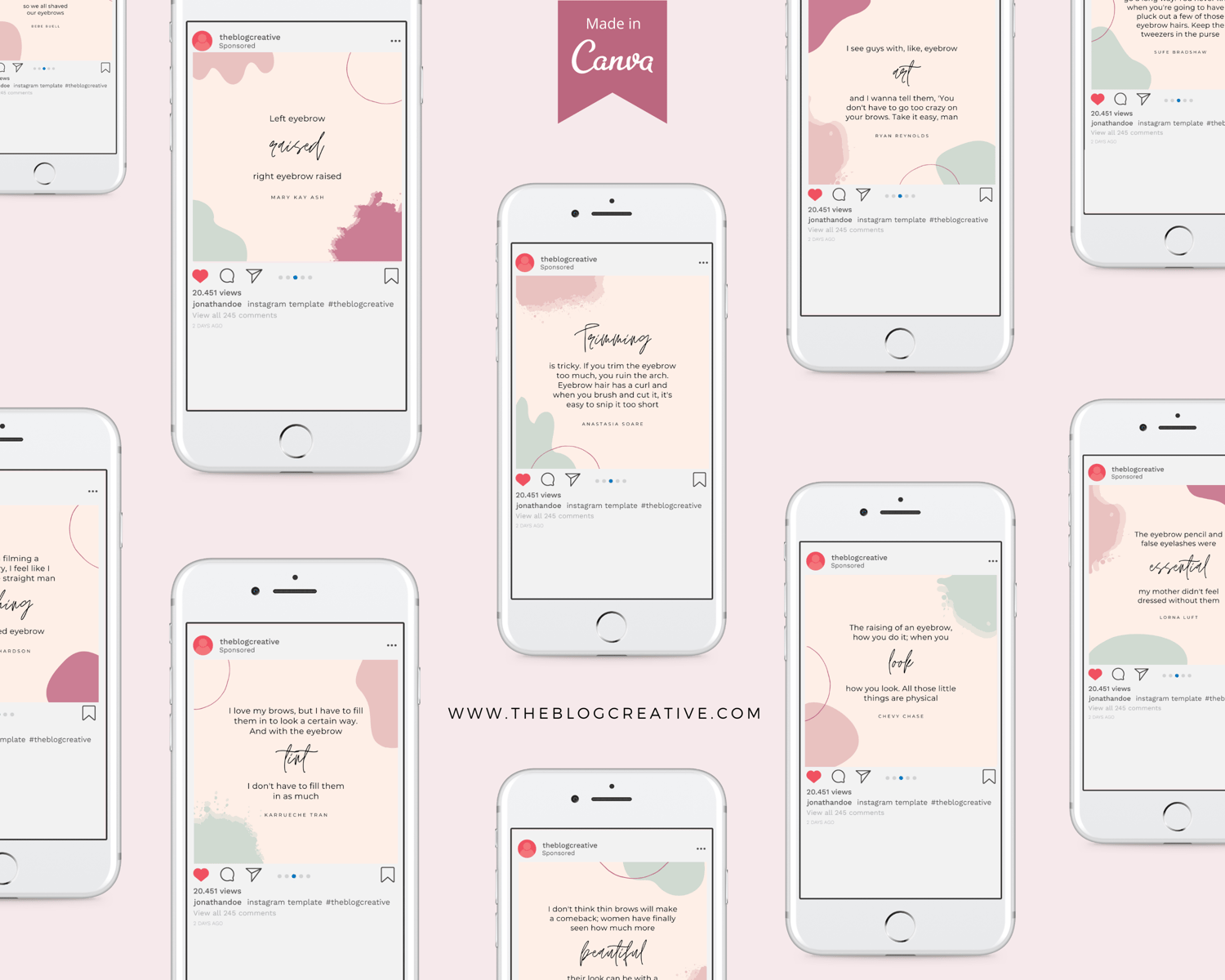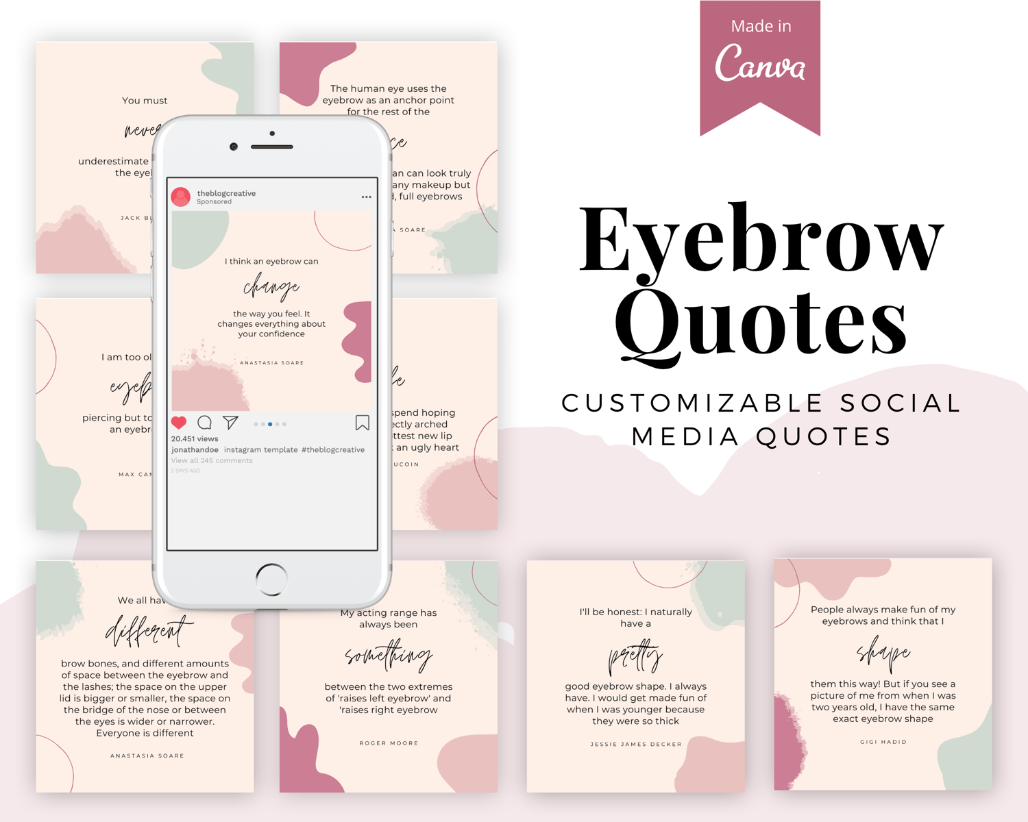 🌿 Eyebrow Quotes Canva Template Pack ✨