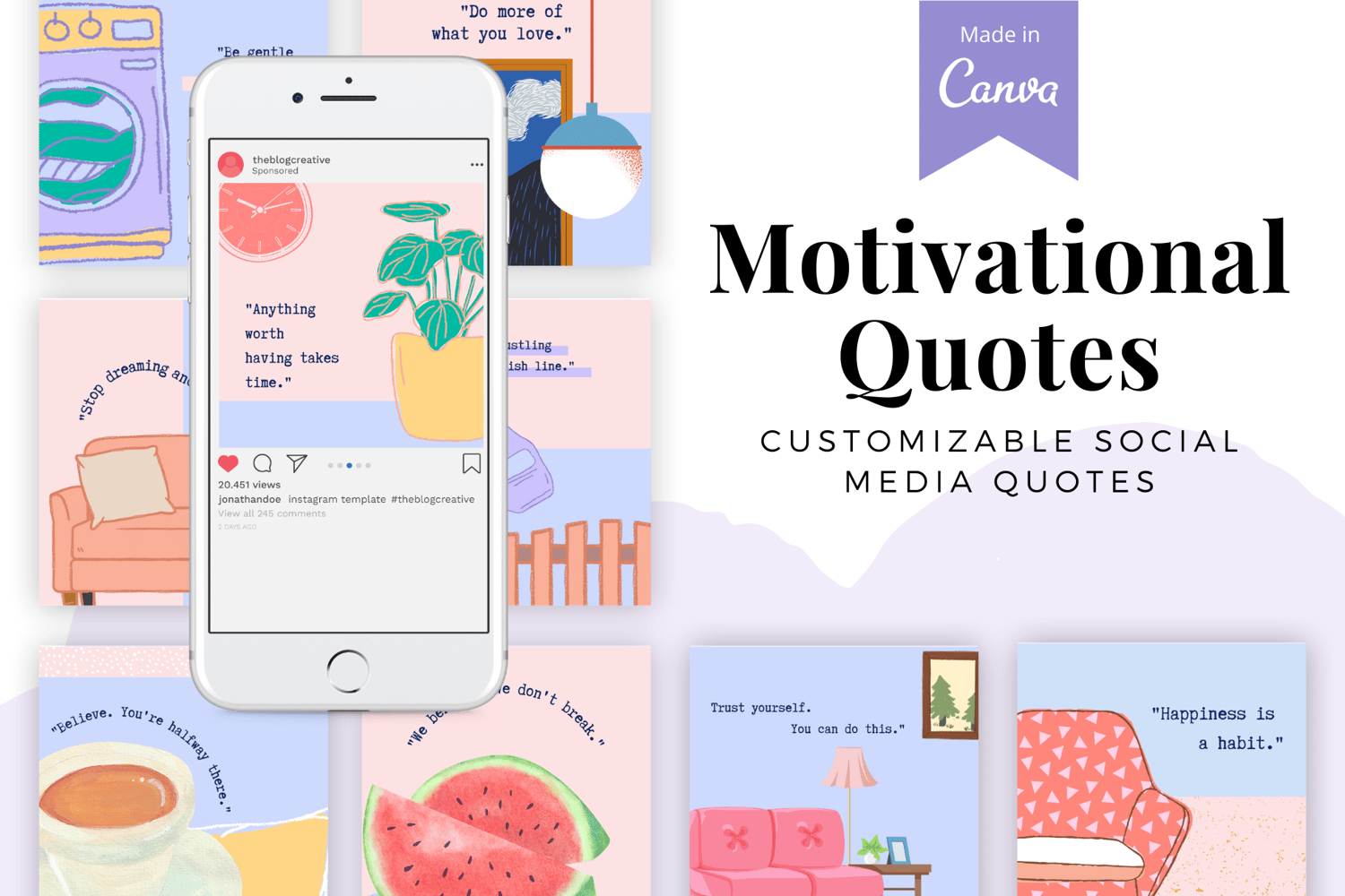 Brighten your feed and uplift your audience with this charming Motivational Quotes Bundle—perfect for content creators, life coaches, and small biz owners who want to spread positivity with style!