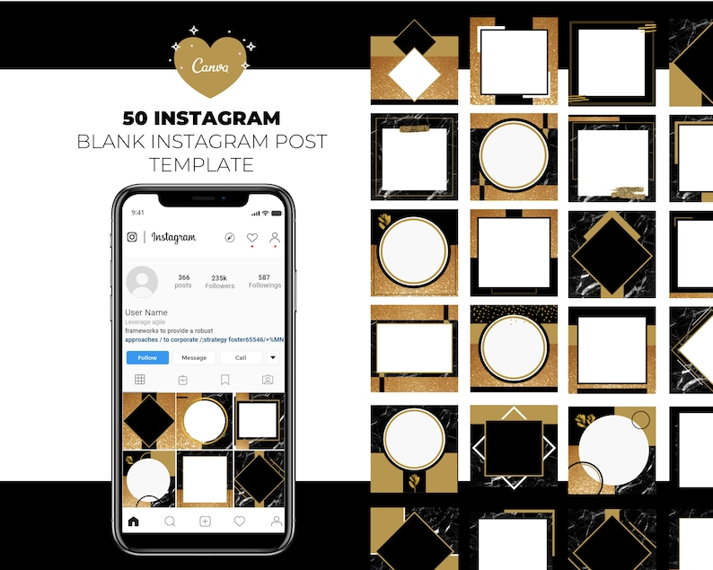 * 50 Blank Instagram Square Post Canva Template (1080px by 1080px).